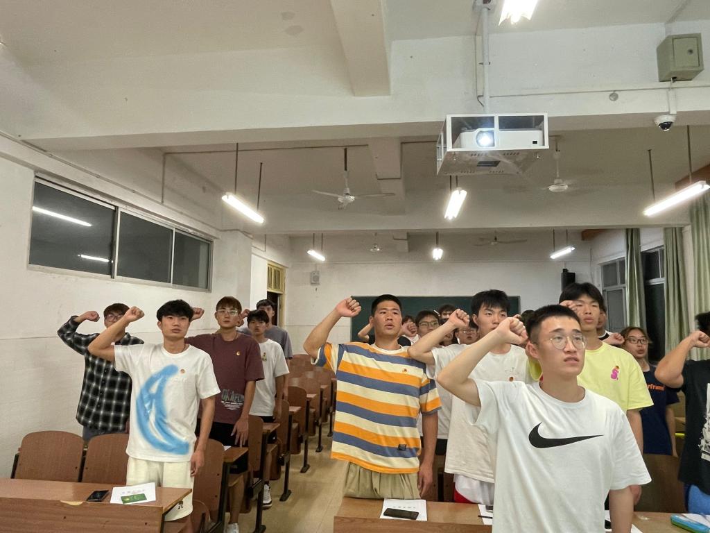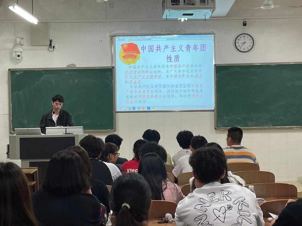 会议伊始,戴老师介绍了此次培训的重要意义。他表示,此次培训对于入团积极分子端正入团动机,增强对团的认识具有重要意义。其次,戴老师梳理了共青团成立历史背景:1922年5月,在党的直接领导下,成立了中国共产主义青年团。它是由共产党领导的先进青年的群众组织,是广大青年在实践中学习共产主义的学校。最后,戴老师对共青团的指导思想和中心任务进行阐述:中国共产主义青年团坚决拥护中国共产党的纲领,以马克思列宁主义、毛泽东思想、邓小平理论、习近平新时代中国特色社会主义思想为行动指南,以建设社会主义现代化国家并最终实现共产主义为奋斗目标。会议最后,戴老师组织全体新团员的入团宣誓仪式,并对入团志愿书的规范填写予以指导。